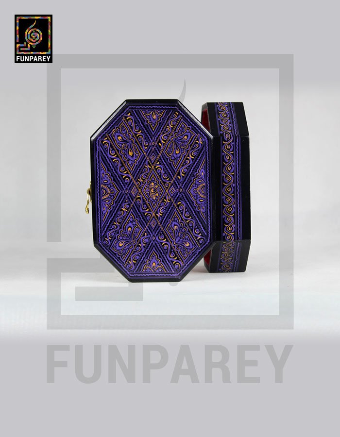 8 Sided Wooden Jewelry Box 6/9 with Lacquer Art Blue