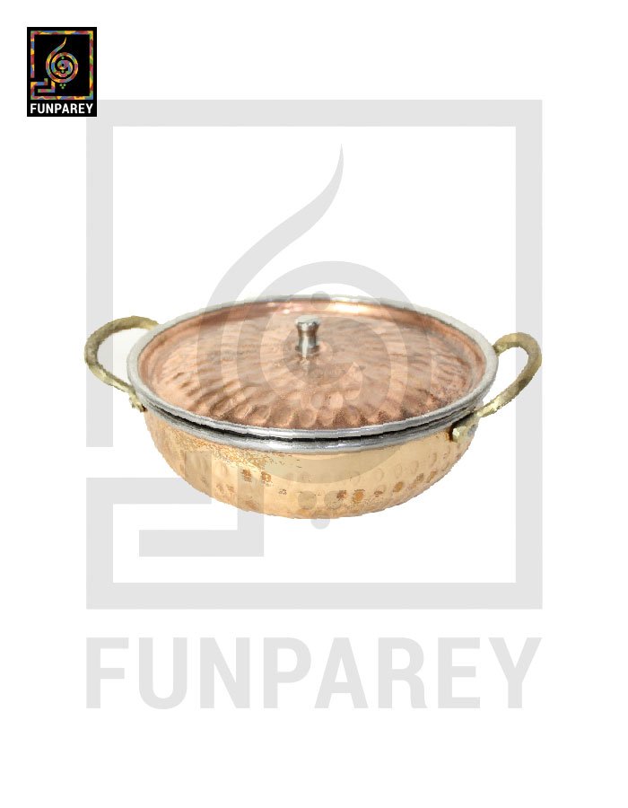Copper Enclosed Stainless Steel Karahi and Food Warmer 8″ (XL/Family)