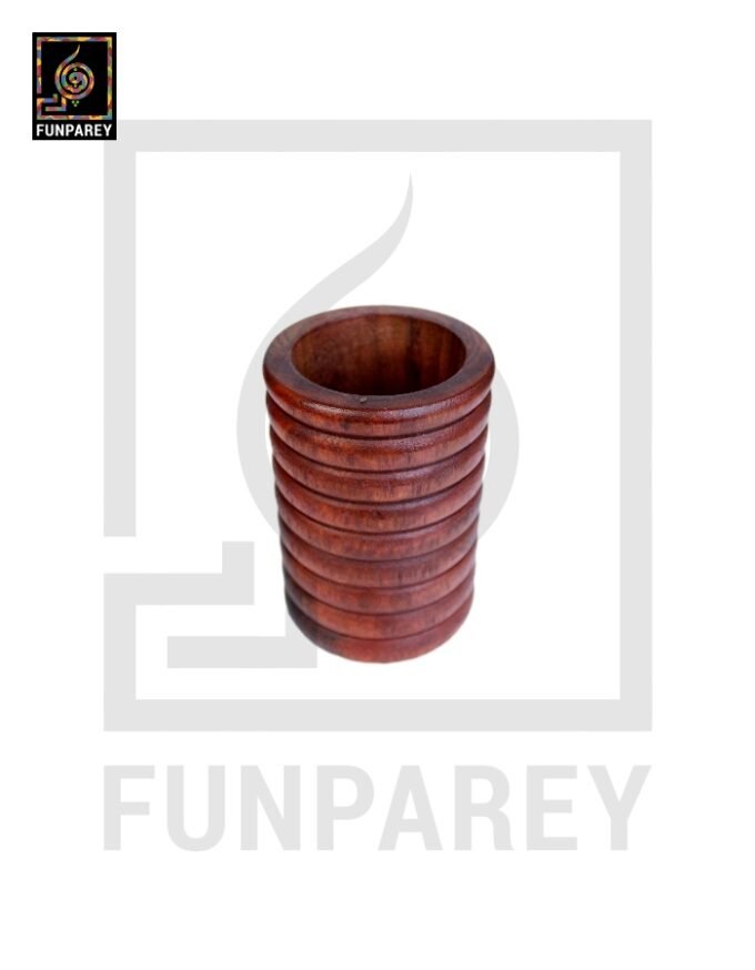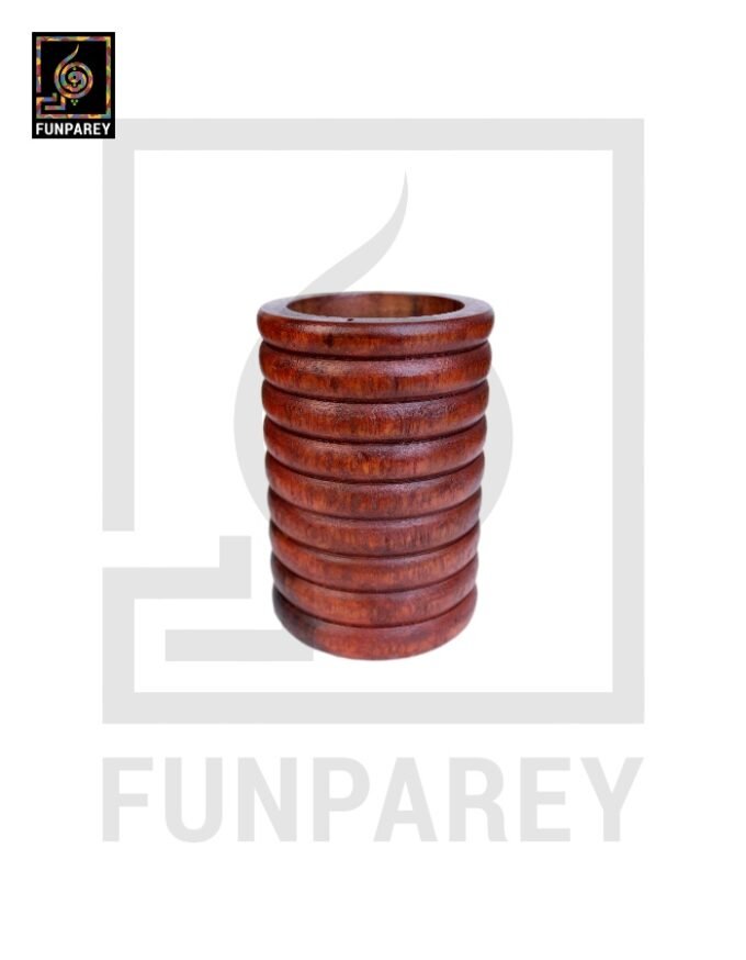 Hand Carved Cylindrical Wooden Accessory Jar Stripped