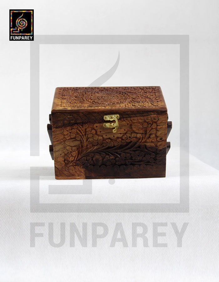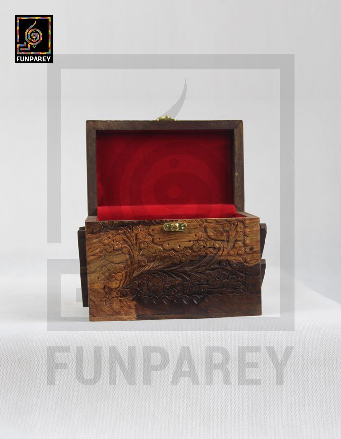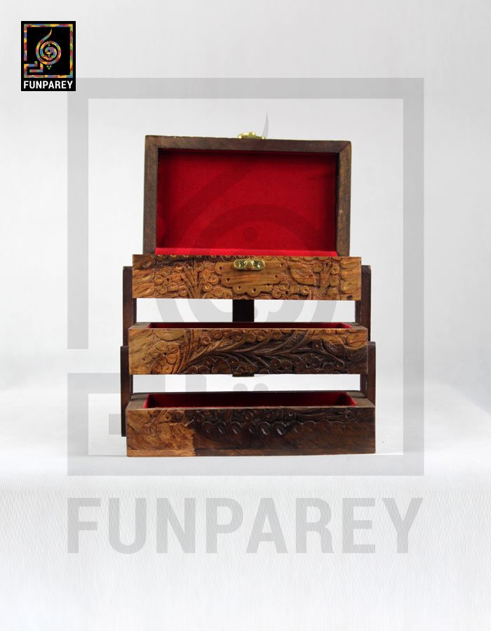 Hand Carved Wooden Cantilever Jewelry Box 8/5 3 Trays
