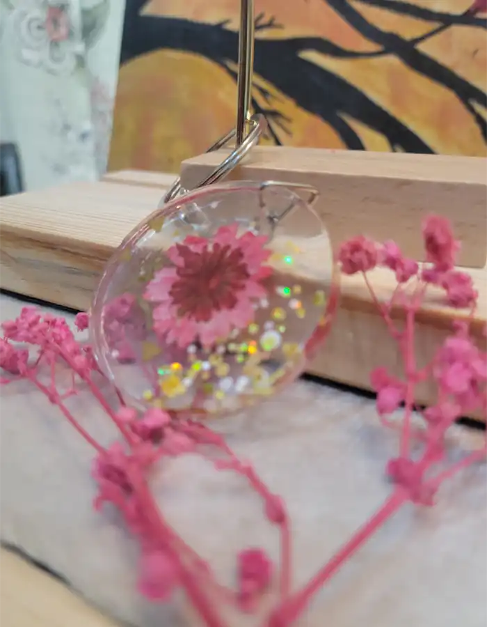 • Floral Design: Features a yellow and white pressed flower encapsulated in high-quality resin.