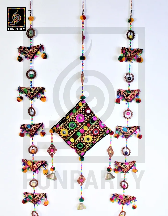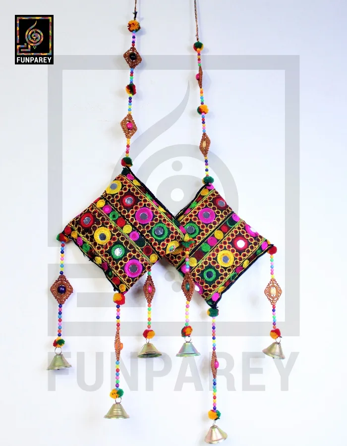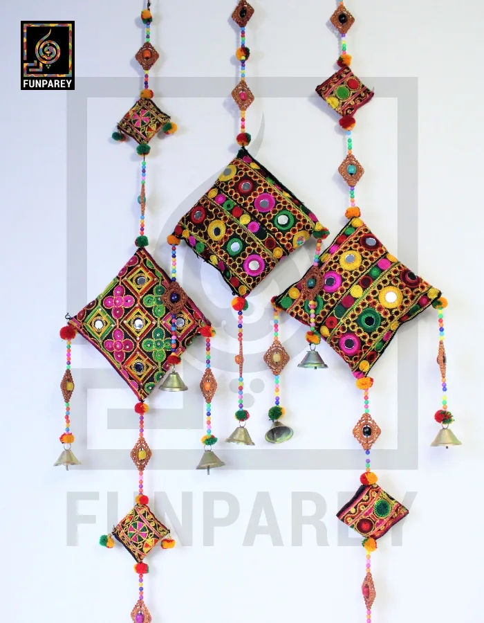 Handmade Antique Embroidered Cushion Door Chime Small Pair