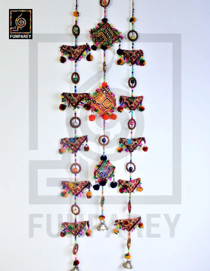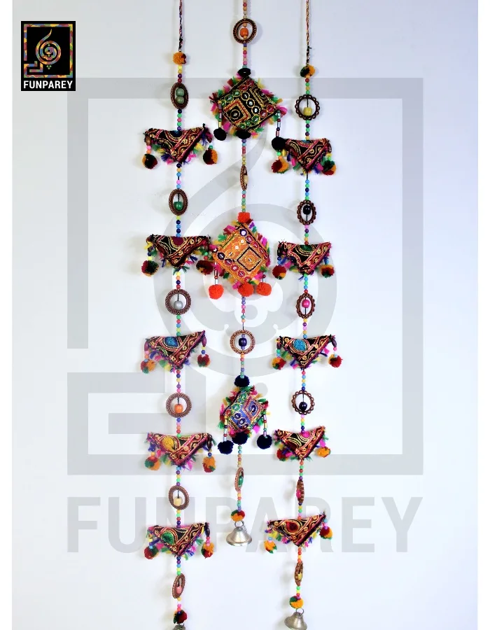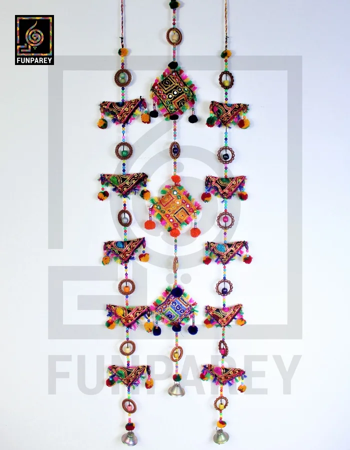 Handmade Antique Embroidered Square Door Chime Set (1 square, 2 Triangle)