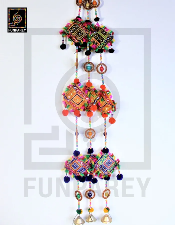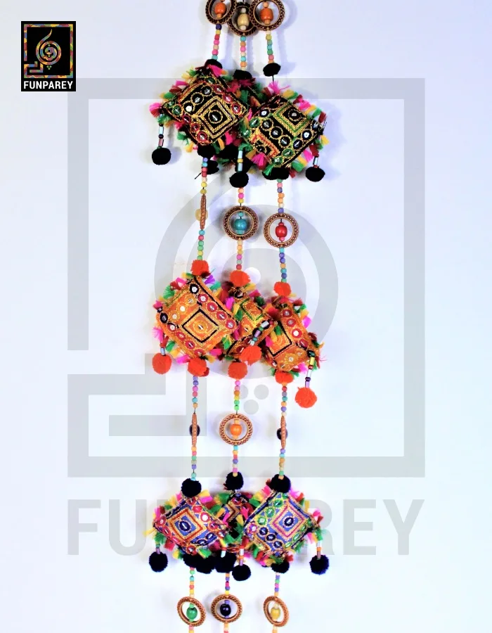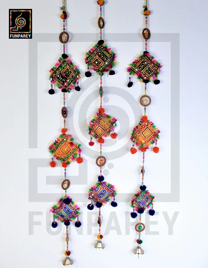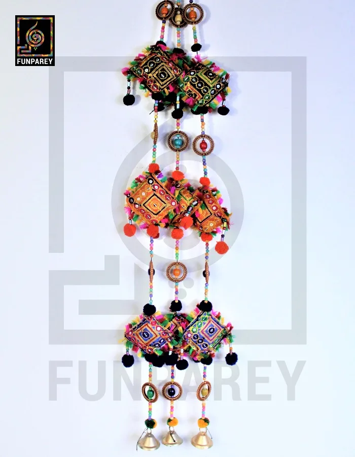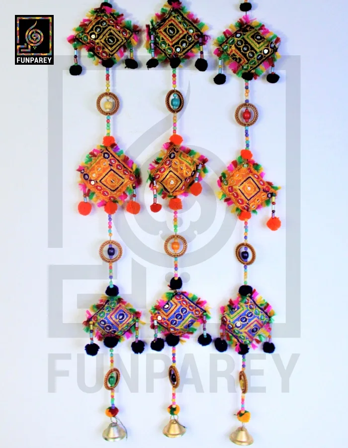 Handmade Antique Embroidered Square Door Chime (Set of 3)