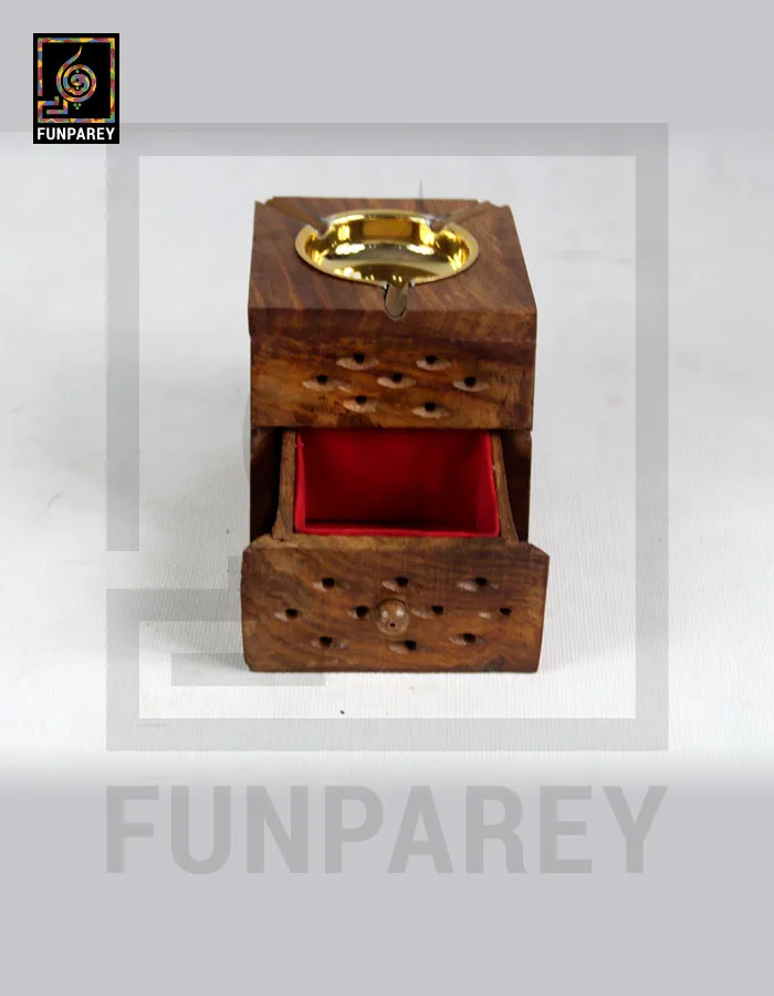 - Wooden Ashtray With drawer has a width of 4 Inches and a length of also 4 Inches.