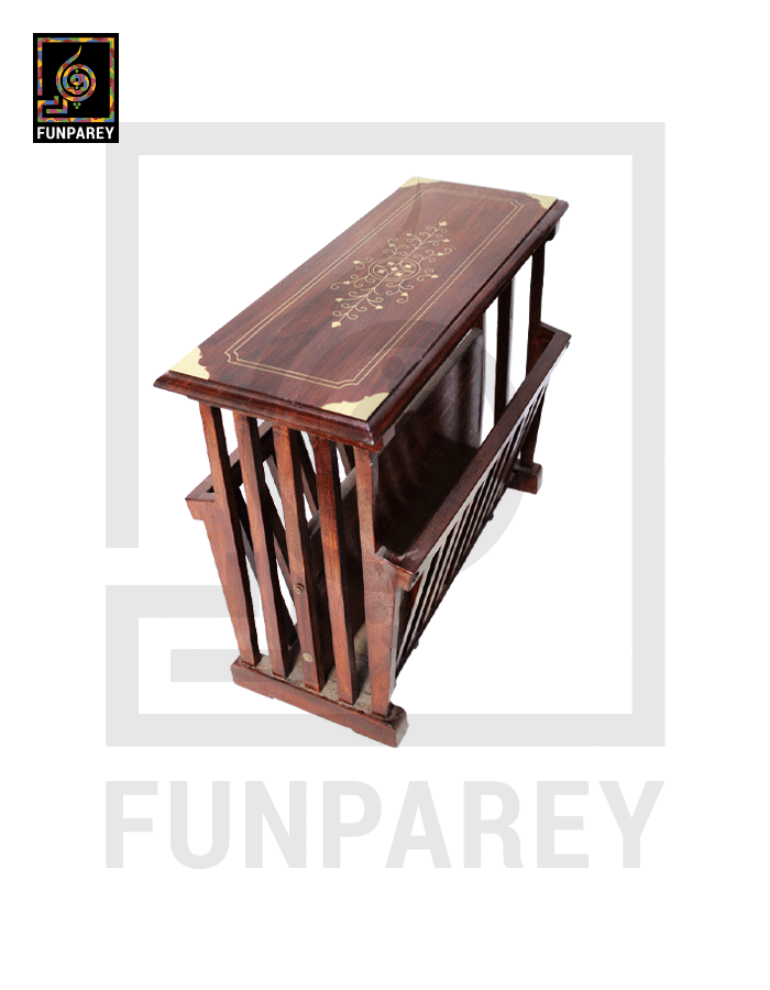 Handmade Wooden Magazine Rack 20″ Rectangular with Brass Work
