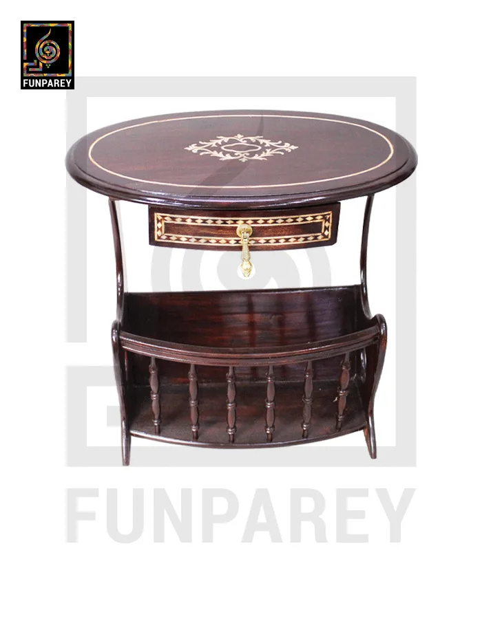 Handmade Wooden Magazine Table 20″ Wood Inlay
