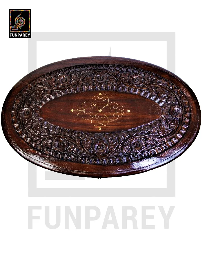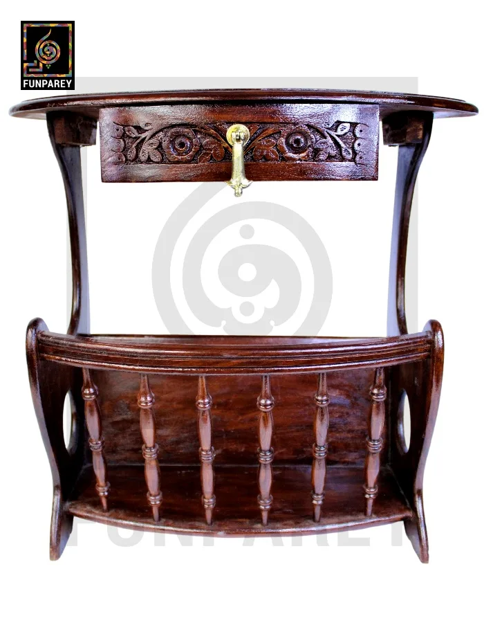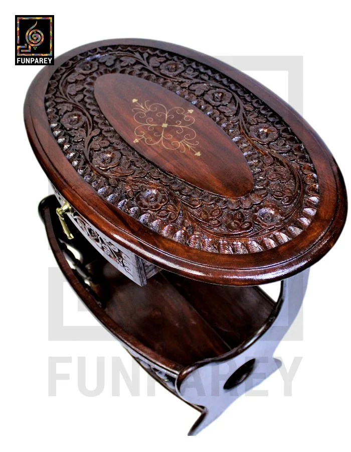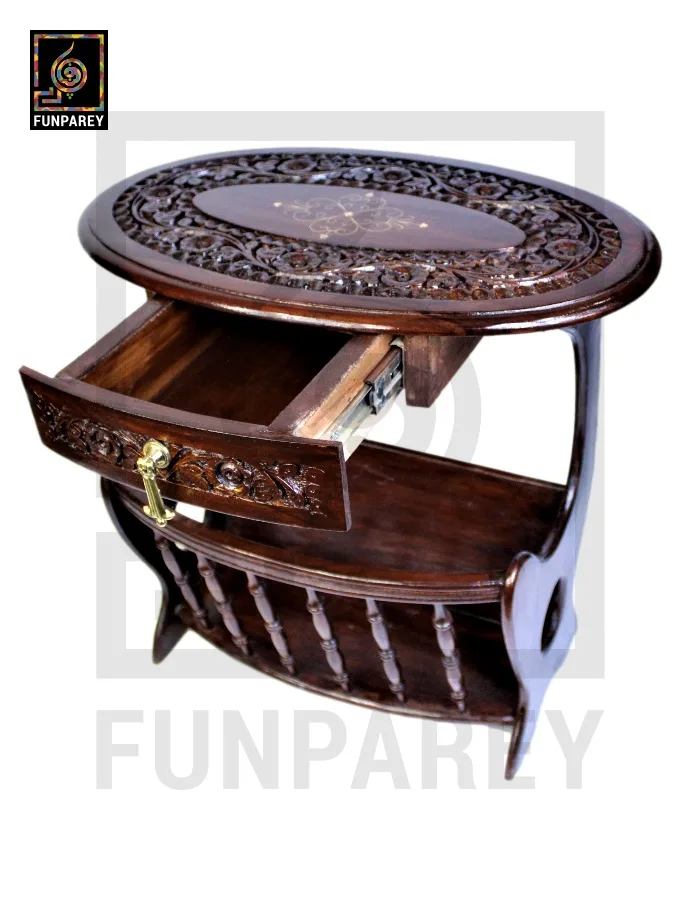 Handmade Wooden Magazine Table 20" with Brass and Caving Work
