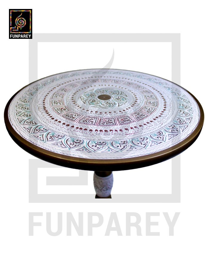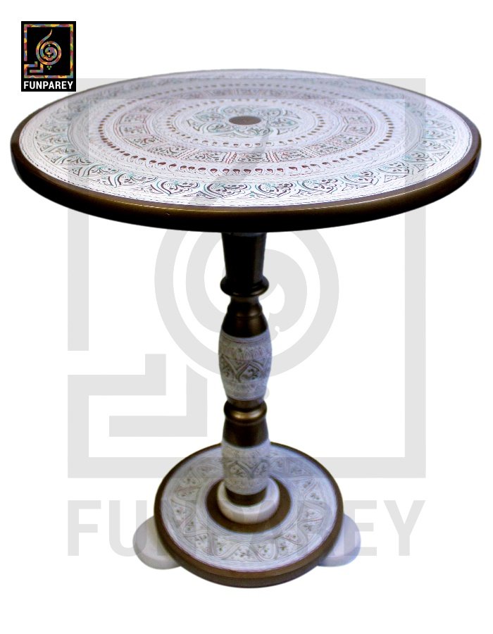 Handmade Wooden Table with White Naqshi Art Merlot