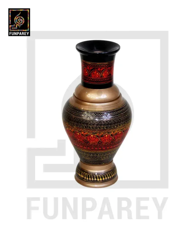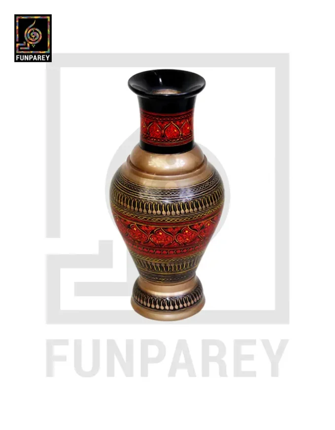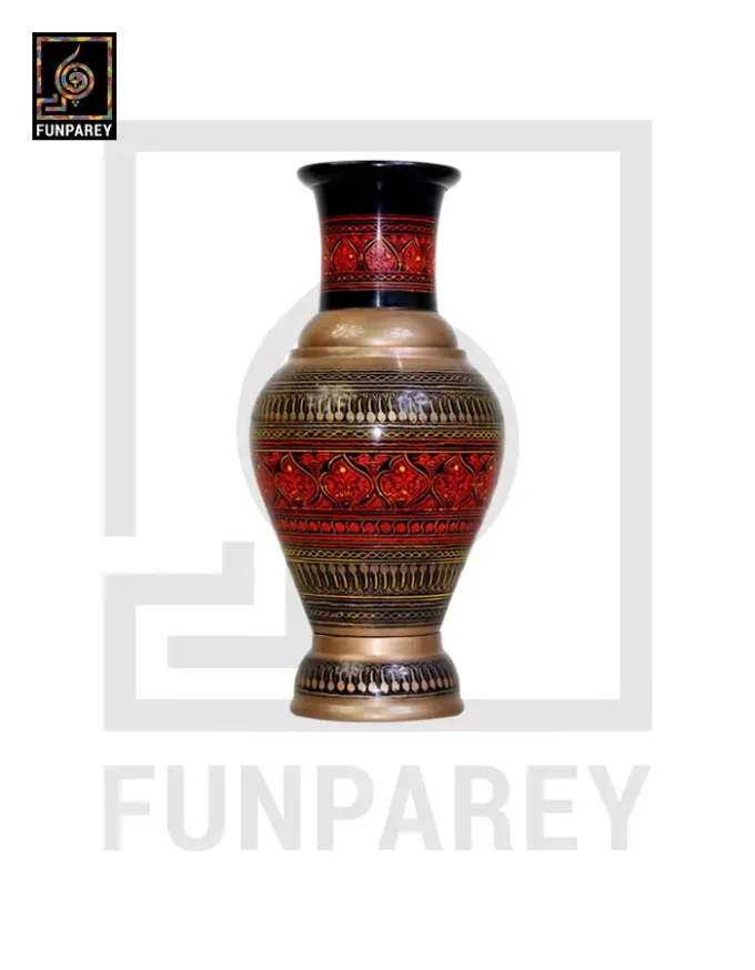 Handmade Wooden Vase with Naqshi Art – 13″ Red