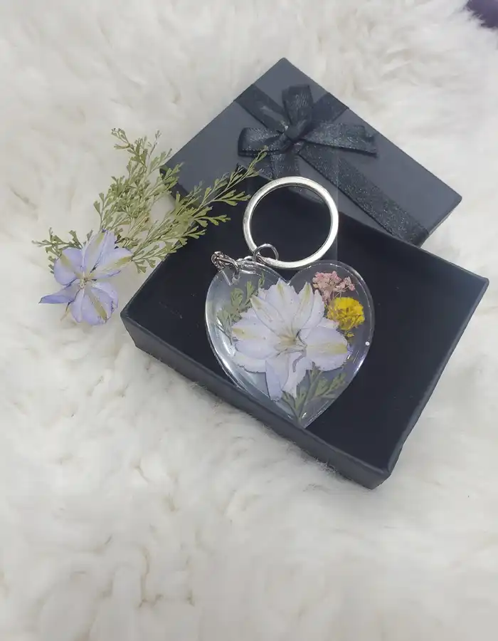 Heart Shape Resin Keychain – Floral Memory