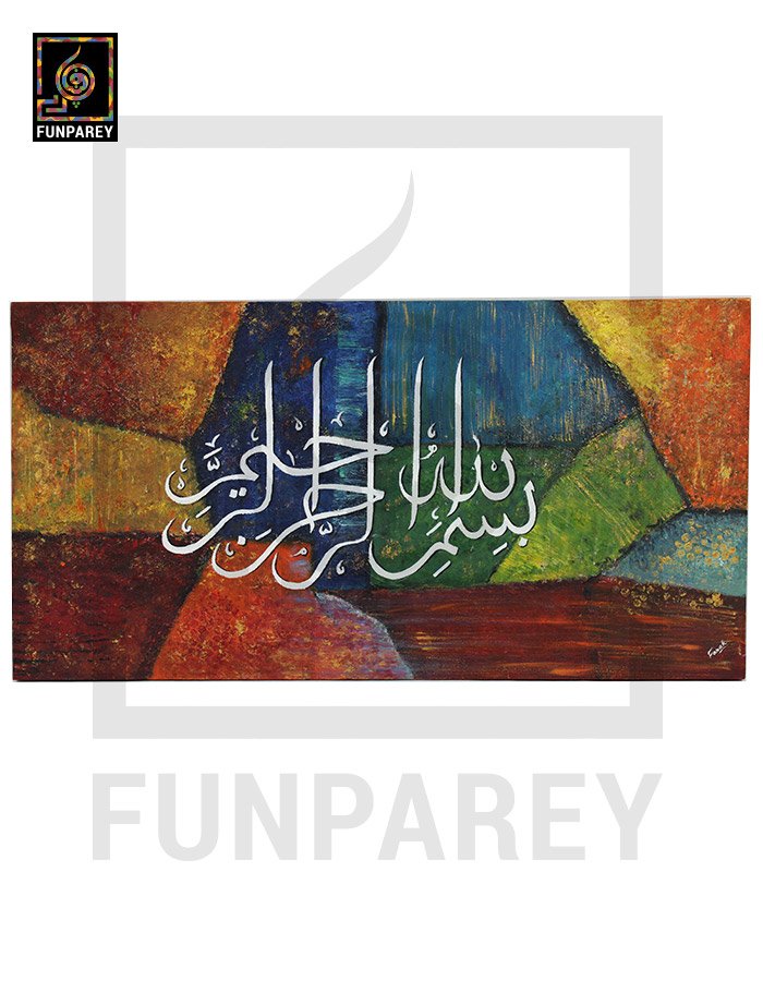 • The Islamic calligraphy on the colorful abstract are Verses in Quran from Surah Ar-Rahmān Ayah: 16 (Arabic: فَبِأَيِّ ءَالَآءِ رَبِّكُمَا تُكَذِّبَانِ Urdu: پس تم اپنے رب کی کس کس نعمت کو جھٹلاؤ گے) which means:  Then which of the Blessings of your Lord will you deny?”.