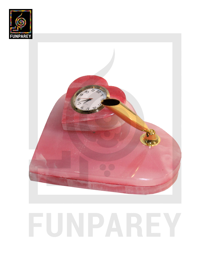 Onyx Stone Multicolor Heart Shaped Desk Clock 6″ PINK