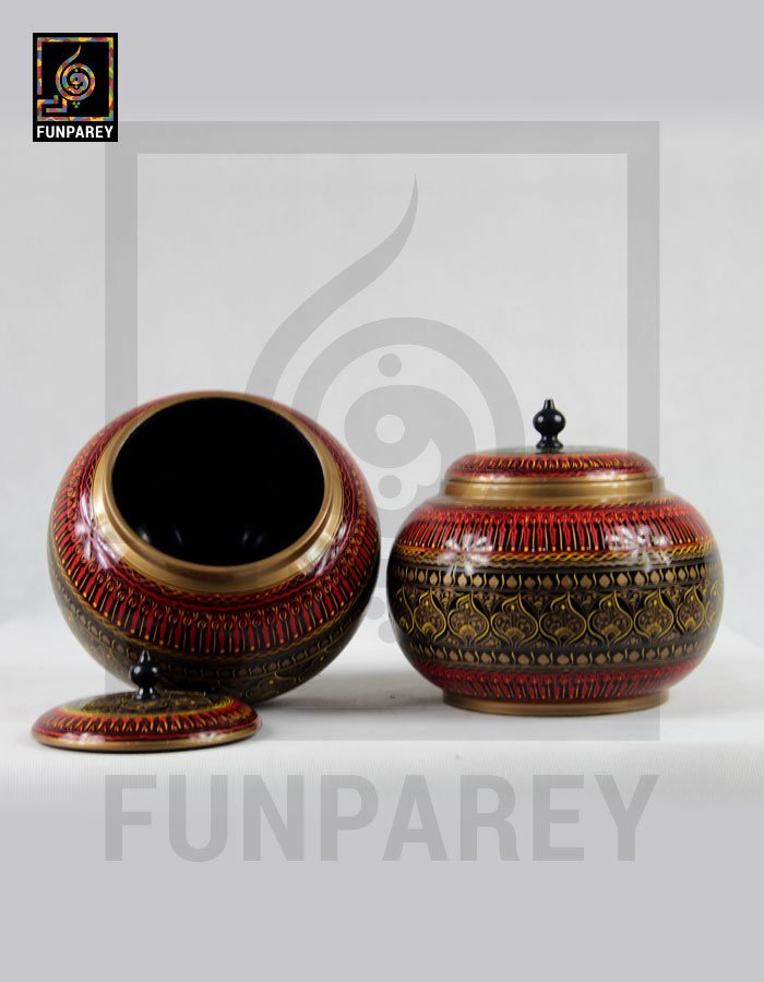 Wooden Cauldron Nakshi Candy Jar – Quba Red