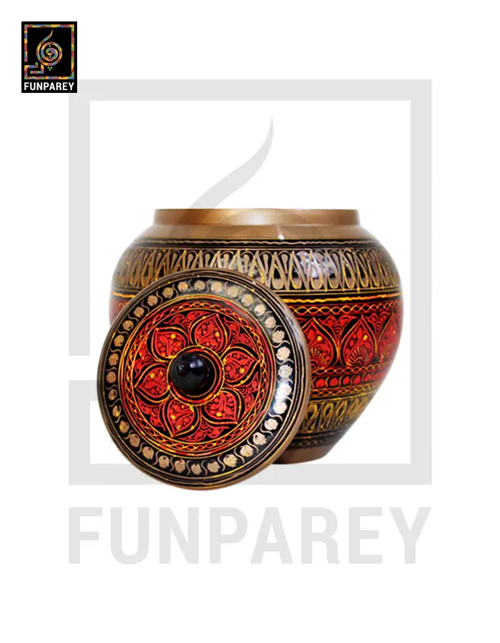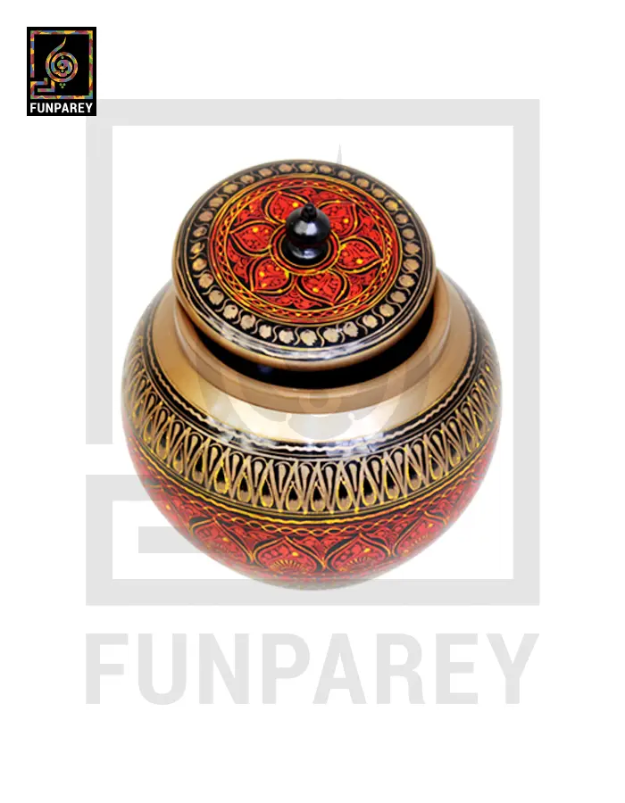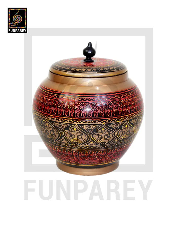 Wooden Cauldron Nakshi Candy Jar - Quba Red