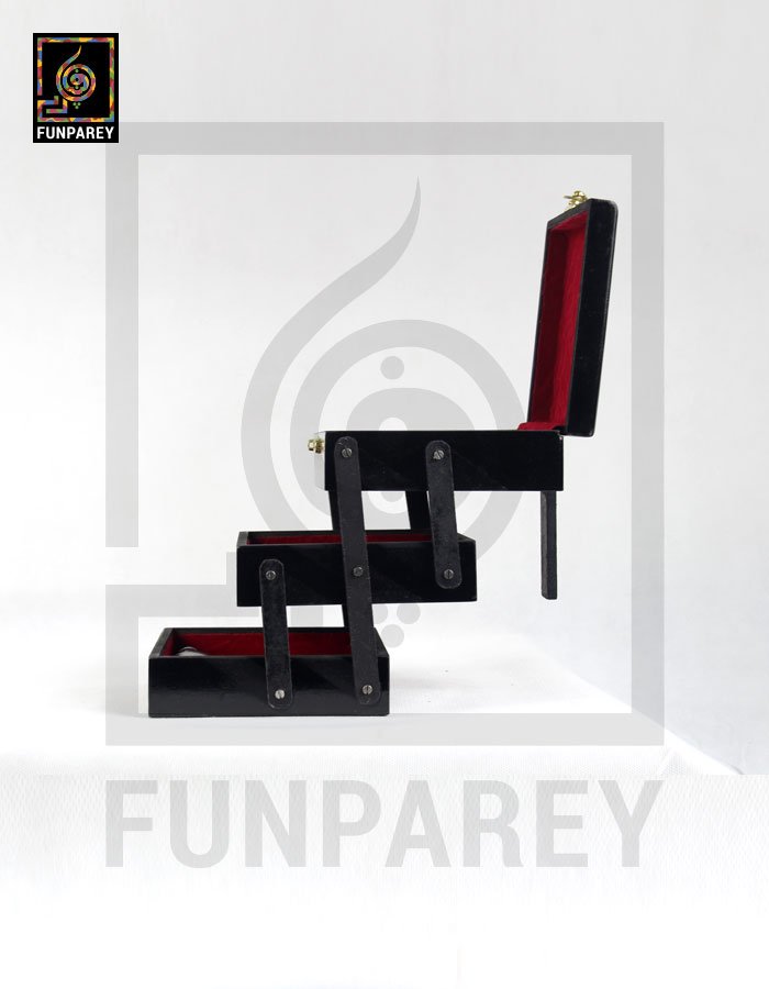 - This Cantilever wooden jewelry box measures 6 inches in width and 6 inches in length.